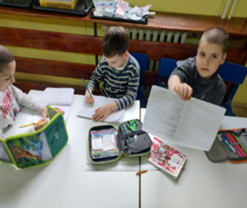 - Василије је одлучио да ће написати исписати страну графоелемента. Била је то чврста одлука. Желео је свима да покаже не само да може да уради задатак, већ и да га уради више пута него што је задато. И наравно, успео је. Задоволјан резултатом ишао је по соби и појазивао свима папир са графоелементима. Био је мотивисан.