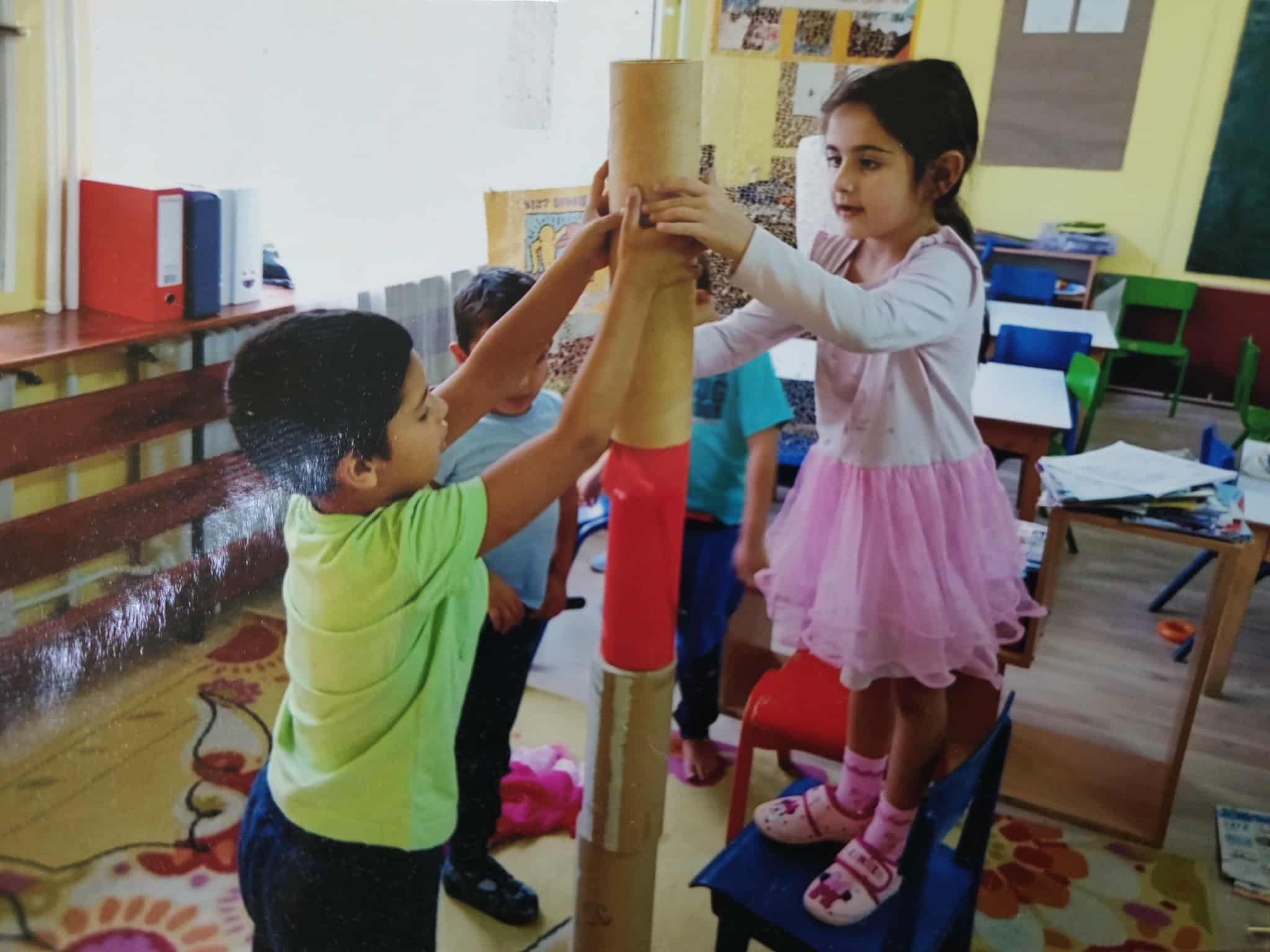 Поређали су основу, а омнда се попео на столицу да би надоградио кулу. Сви су били одушевљени како је то урадио. Питали су: могу ја, могу ја…. Урош је наравно желео да да и другима да пробају, али приоритет су наравно имали Аурора и Душан, који су са њим у игри од шочетка. Наиззменично су се пели и ређали, а Уроп их је бодрио. - Initiative