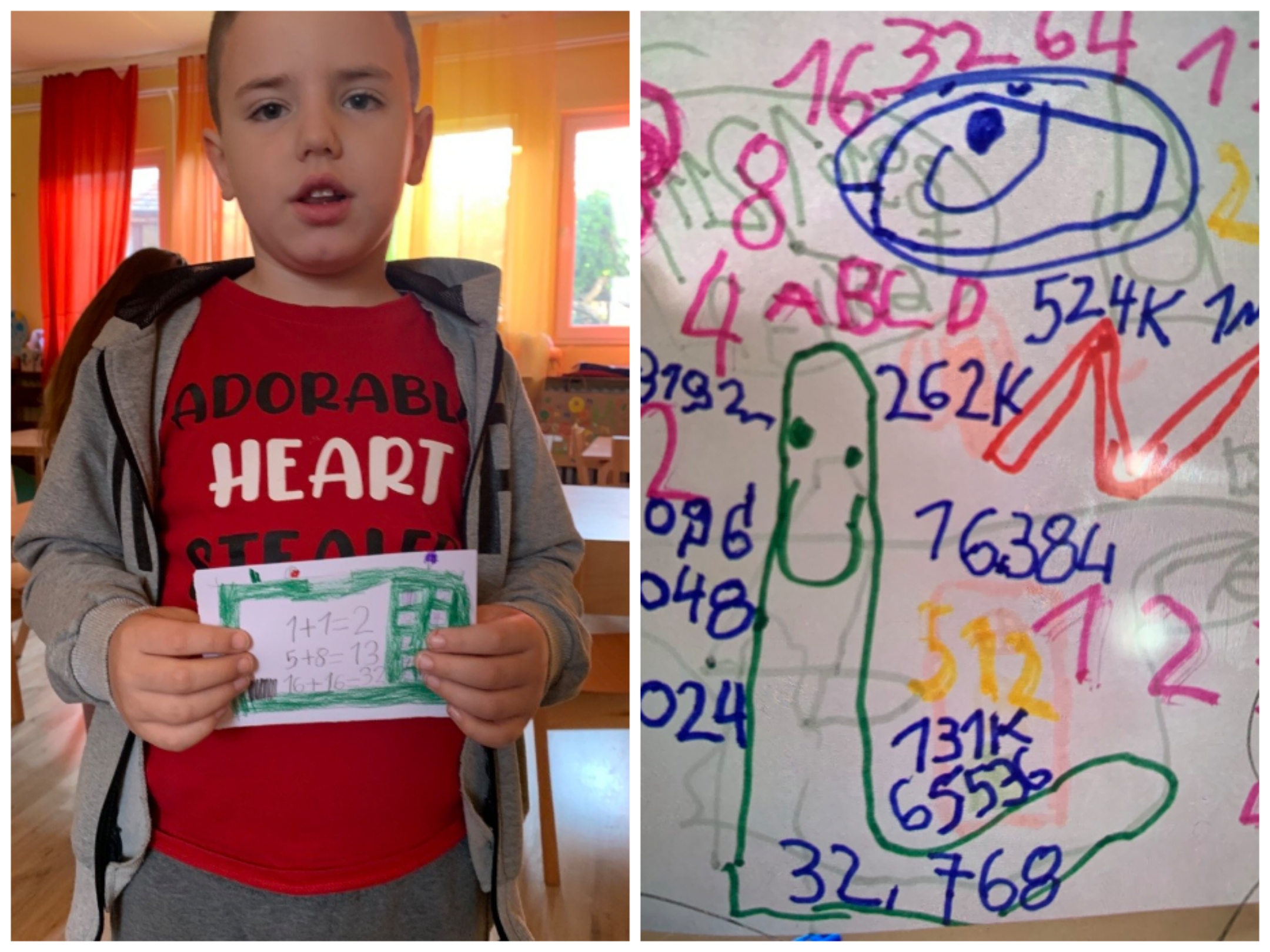 - Вујадин је дечак који увек у својој свесци или на папиру, пише бројеве. Воли да рачуна, сабира и одузима, па чак решава и доста сложене задатке. Помаже и објашњава деци из групе, како правилно да напишу бројеве и увек је спреман сваком да помогне. Осим ове јаке стране, његова одговорност се огледа и у другим свакодневним ситуацијама, које указују да је свестан својих обавеза, поштује правила, показује бригу за друге. осим математичких задатака, Вујадин често другарима и прочита неку причу у литералној просторној целини, из чега видимо и да му читање на раном узрасту иде од руке.