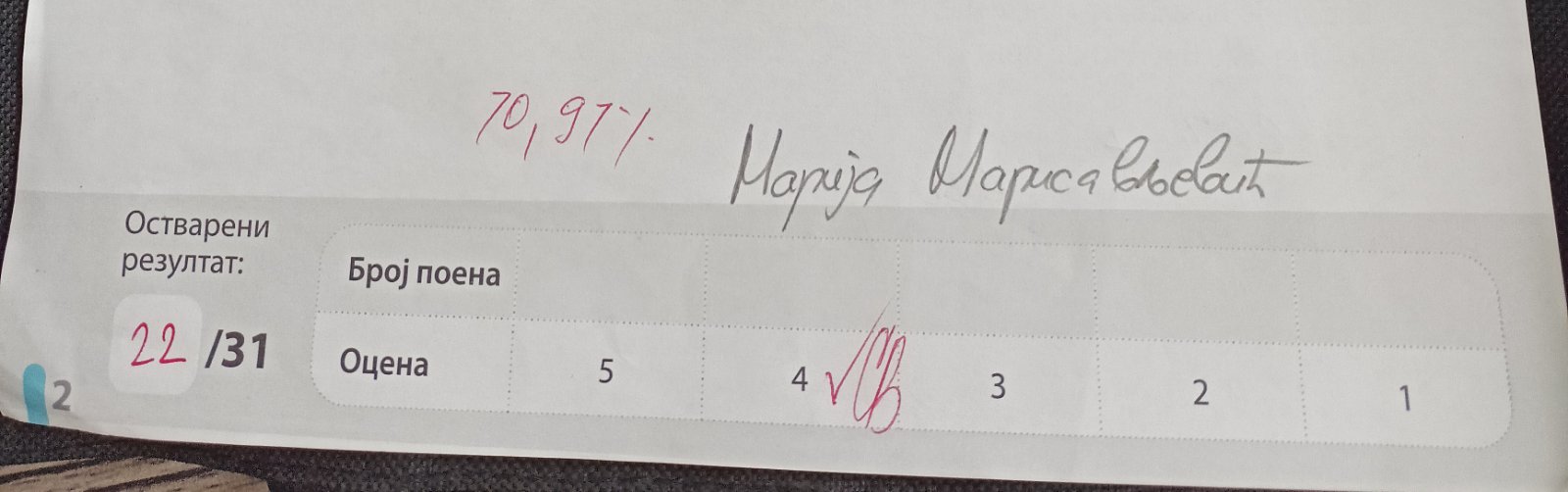 Анастасија је додала:„Много сам срећна због оцене! Коначно сам успела после доста труда. Желим свима да покажем оцену! Сада ћу да учим још више.“