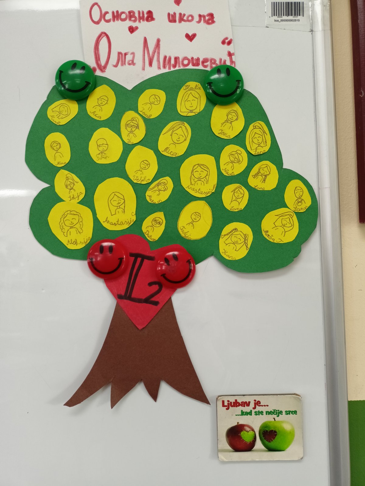 У школи смо обележавали Недељу заједништва, у знак сећања на страдалу децу у Београду и Дубони. Дуго смо разговарали о томе шта значи та недеља нама, како треба да бринемо једни о другима и да се трудимо да на време и на прави начин решимо евентуалне проблеме. Подсећали смо се како смо ту недељу обележили прошле године. Рекла сам им шта је програм за ову недељу и објаснила да ћемо остављати своје поруке на дрвету заједништва у холу. Јана је самоиницијативно направила дрво заједништва нашег одељења којим је представила своје другове и донела да нам га поклони...Браво, Јано! - Positive Personal and Social Identity