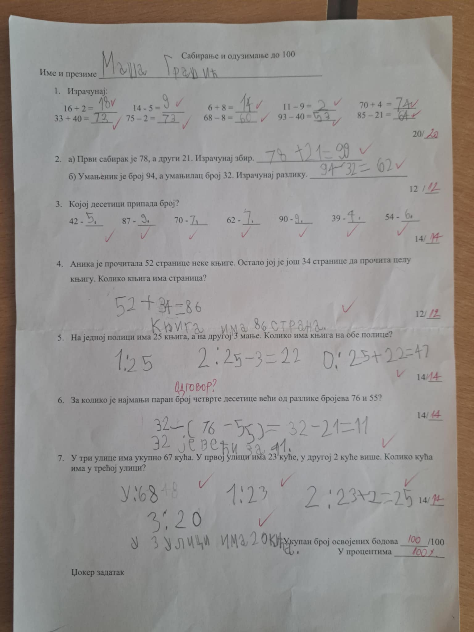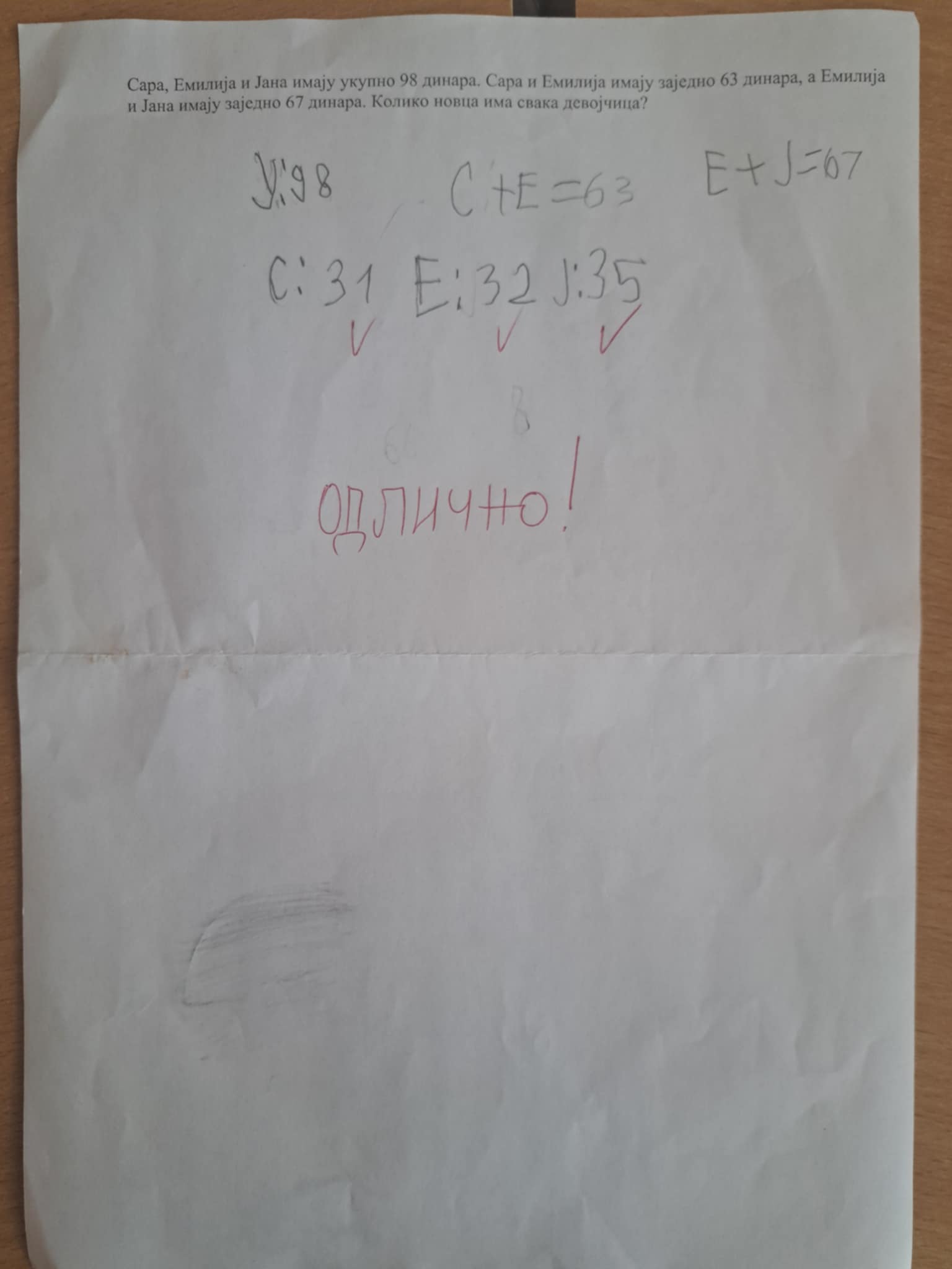 Али Маша није ништа рекла. Само је наставила да гледа у задатак и размишља. Нисмо знали да ли ће га урадити. На крају, када смо предали тестове, учитељица је рекла да је Маша једна од ретких која је решила џокер задатак – и то тачно!