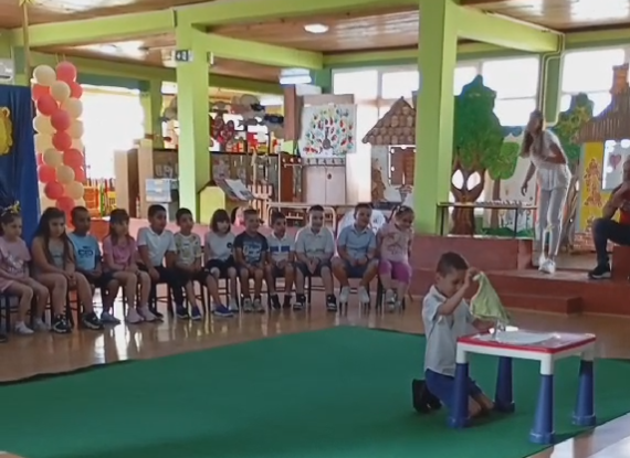 На завршној приредби, Аца је био мађионичар. У вртићу смо се договорили да са родитељима кући смисли мађионичарски трик. Заједно са родитељима смислио је тачку у току које је требао да нестане новчић. Испрва, Аца је оклевао да ли да прихвати да изведе трик за приреду. Било је дана када је одмахивао главом и дана када је изгледало да ипак жели.