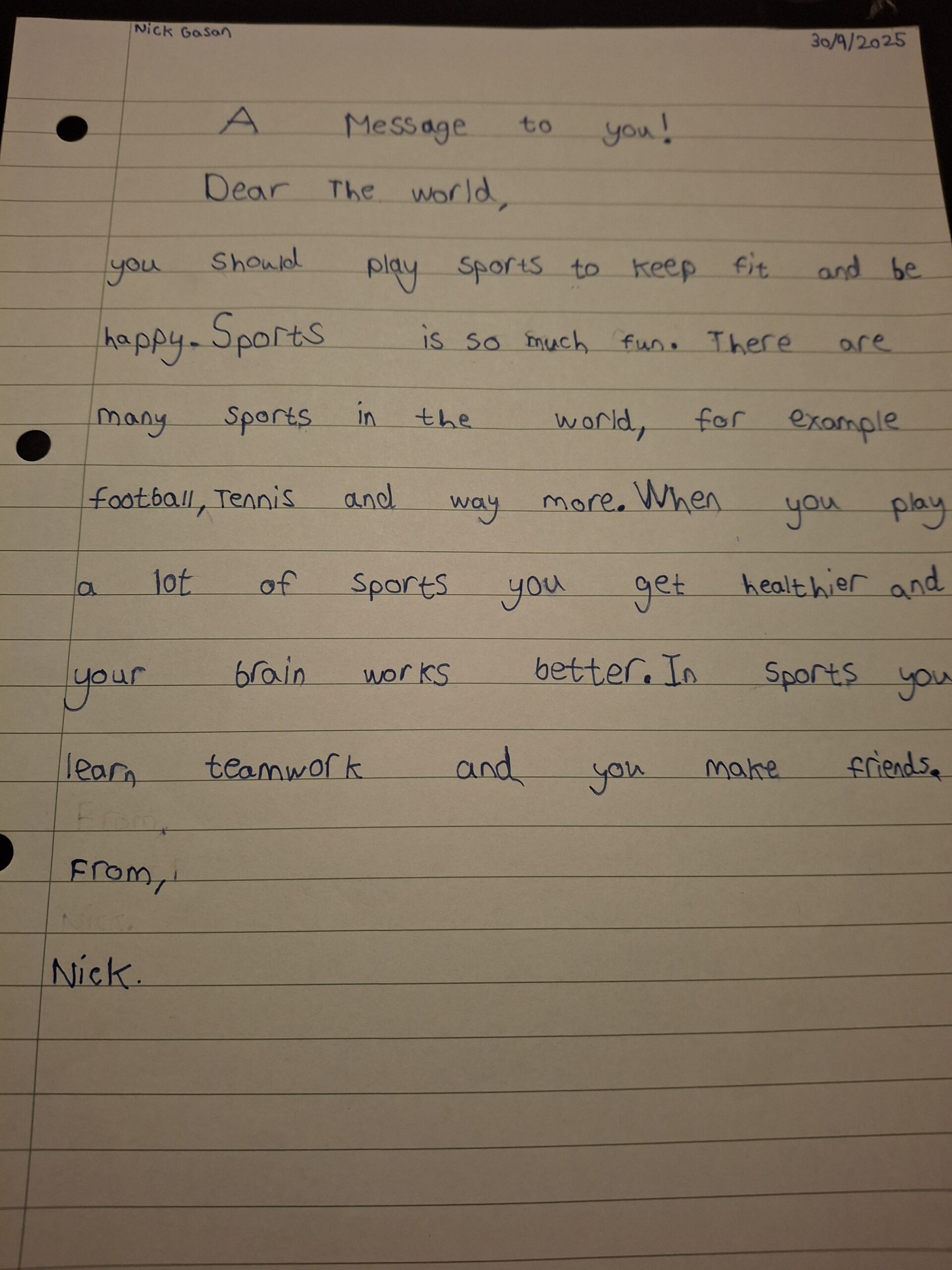 - Well done Nick for encouraging people to take up a sport. Like you said in your message, sports keeps you fit both physically and mentally!