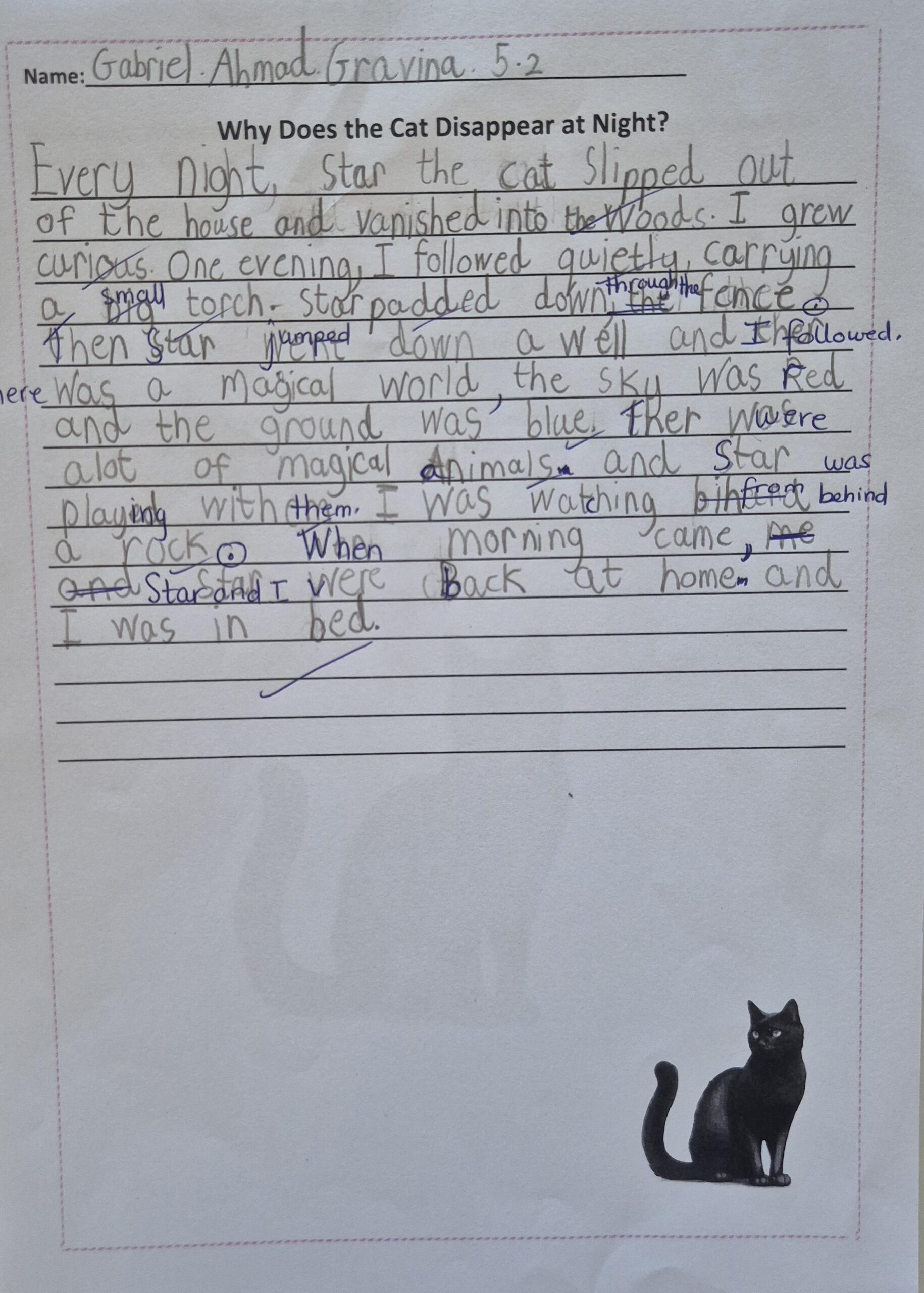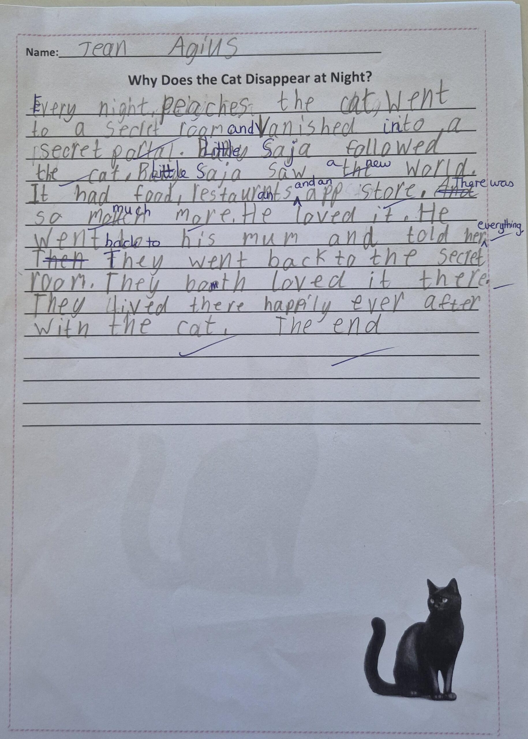 After being shown an example by the teacher, there was a discussion to come up with more ideas as to how students could develop the story. Pupils were allowed to use their imagination and be creative.