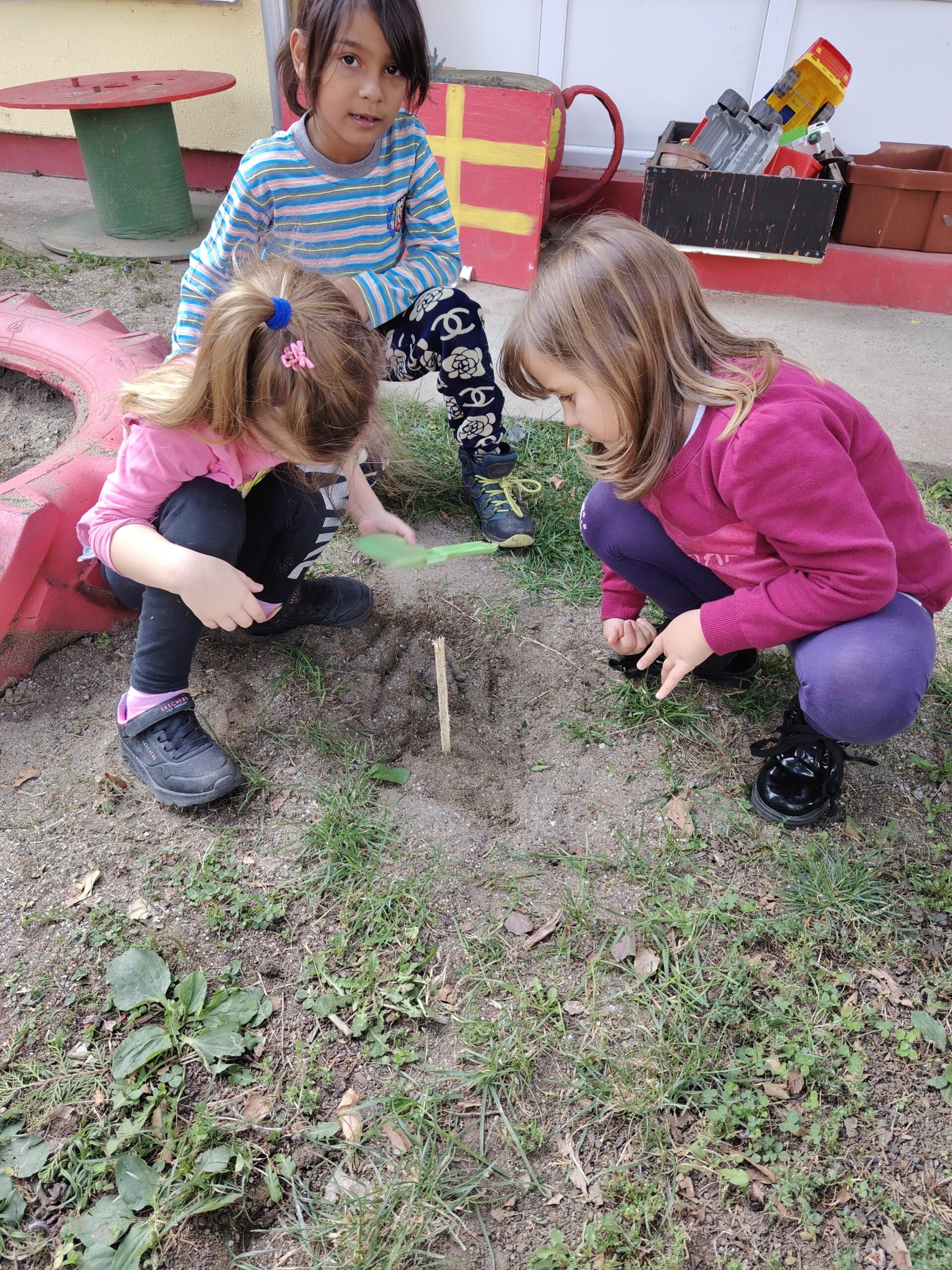 Ива: Скакавца сам затрпала јер је био мртав. Један другар га је згазио и убио, а ја сам плакала. Дошла сам на идеју да га затрпам. Ставила сам дрво да знам да је он ту, кад ја наиђем на њега. Воду сам ставила са стране да порасте трава и цвеће то да буде.