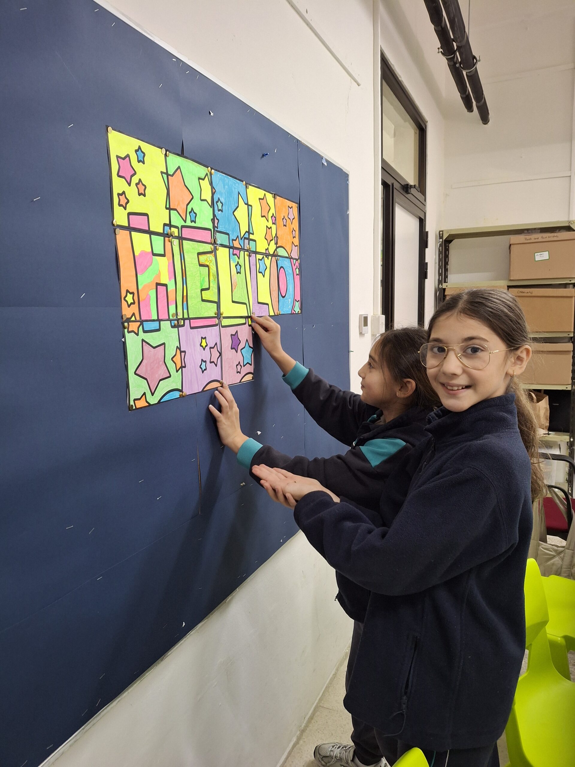 - We started the new year with a collaborative project. Each student got a piece of the puzzle to colour in, then they had to put it all together to make a complete picture. Maxine Paris not only did her part of the puzzle but eagerly helped the others to put up theirs.