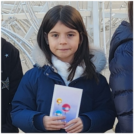 ,,Ја сам написала и украсила своју честитку. Једва чекам да идемо у град и да пролазницима честитамо Нову годину. Срећна сам због тога. И они ће да буду срећни. То је баш лепо. Једва чекам Нову годину и добићу пакетић“. – Лена