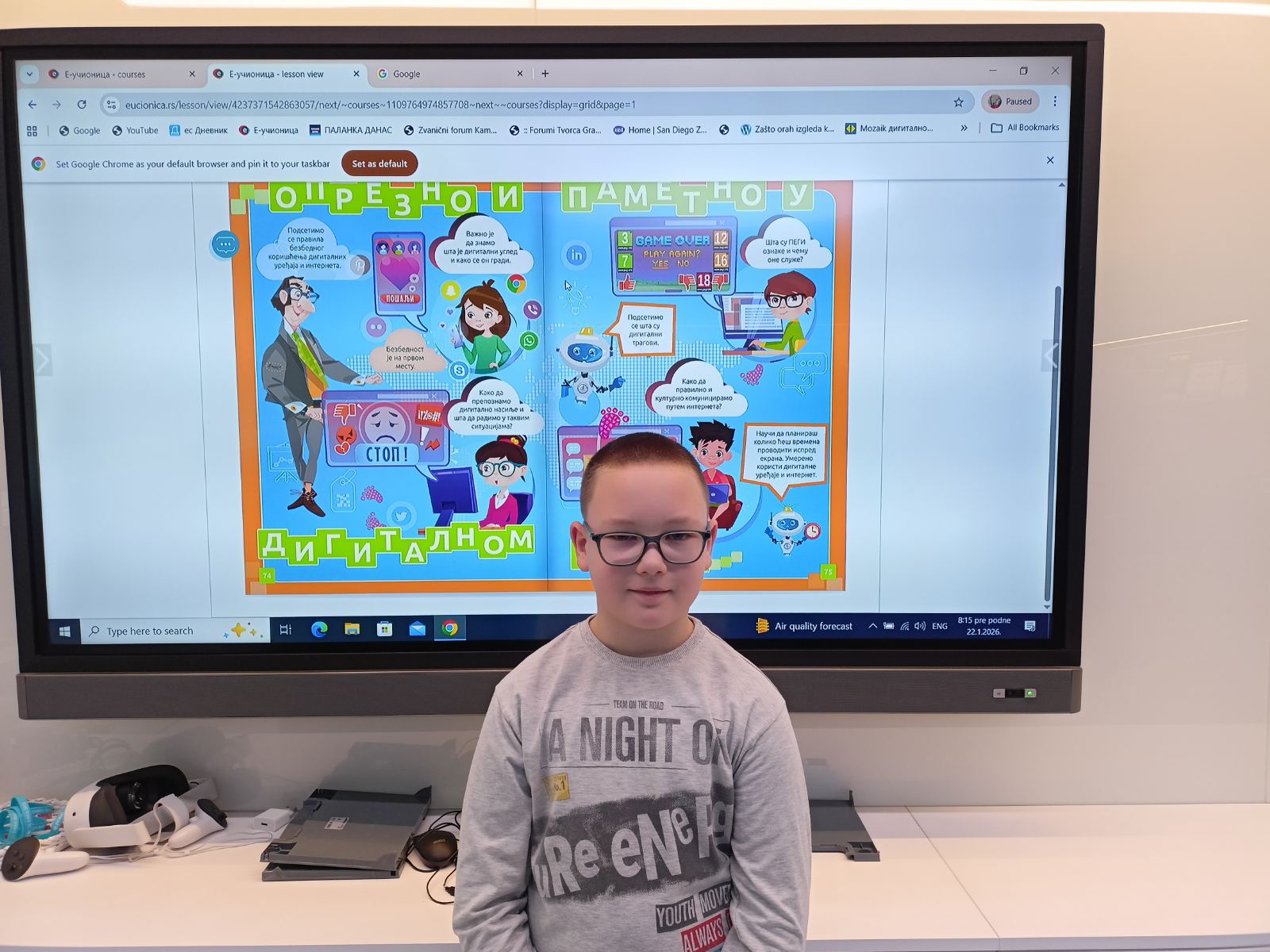 - 19. 1. 2026. Душан ми је у школи пришао и испричао да мисли да га је на интернету, преко Snapchata, контактирао неко ко је предатор. Била сам веома изненађена и затечена. Питала сам да ли је обавестио некога о томе, па је потврдио да је рекао тати када је та особа почела да га детаљније испитује, да му тражи слику, упућује комплименте. Такође ми је рекао да су покушали преко мамине пријатељице која ради у полицији да дођу до тога ко је особа, али је посумњао да се то дешава и избрисао профил. Била сам поносна на њега и себе када је рекао да је посумњао да то није добронамерна особа на основу онога што смо учили у школи и о чему смо разговарали везано за њихову безбедност и безбедност на интернету. Рекао је да је био затечен јер је мислио да то њему не може да се деси. Била сам срећна што је све добро прошло и замолила га да, иако је причао друговима шта му се догодило, још једном попричамо о томе на часу Дигиталног света и да се присетимо свега о чему смо разговарали. Било је то веома вредно искуство. Већина ученика је била затечена догађајем и помало уплашена. Свакако сам сигурна да ће сада опрезније приступати комуникацији и садржајима на интернету.