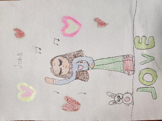 На часу физичког и здравственог васпитања смо радили слободно кретно изражавање уз музику. Приметила сам да Јована у својим покретима користи елементе фолклора и плеса. Има осећај за покрет и ритам. Лепо и лако се сналази у простору.