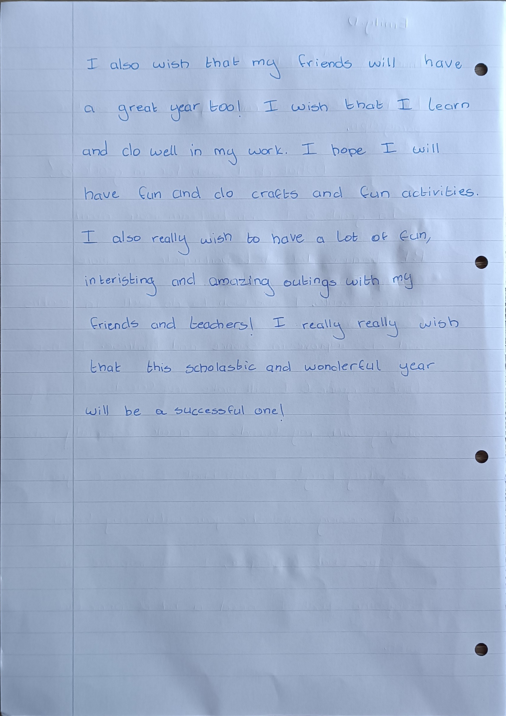 Edward shows great curiosity and enthusiasm for learning. He has set clear goals for himself and expresses them with positivity and excitement. Well done for approaching Grade 6 with such motivation and a love for new experiences!