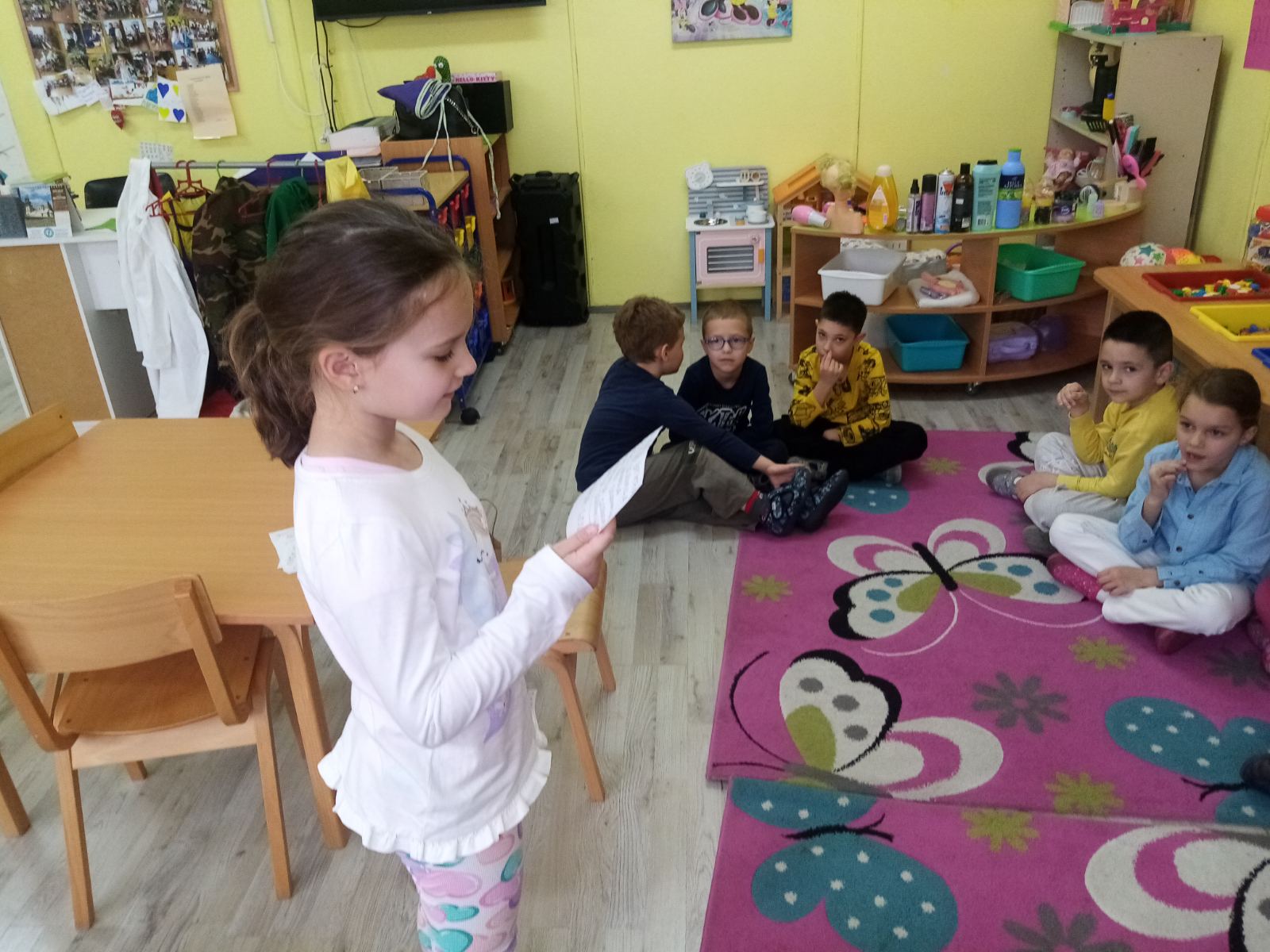 - Јулија је показала иницијативу и креативност тиме што је сама направила књигу код куће и желела да прочита другарима. Самостално је осмислила причу и илустровала је, а при презентацији је јасно и занимљиво преносила своје идеје другарима. Њена активност подстиче креативност, радозналост и мотивацију код целе групе.