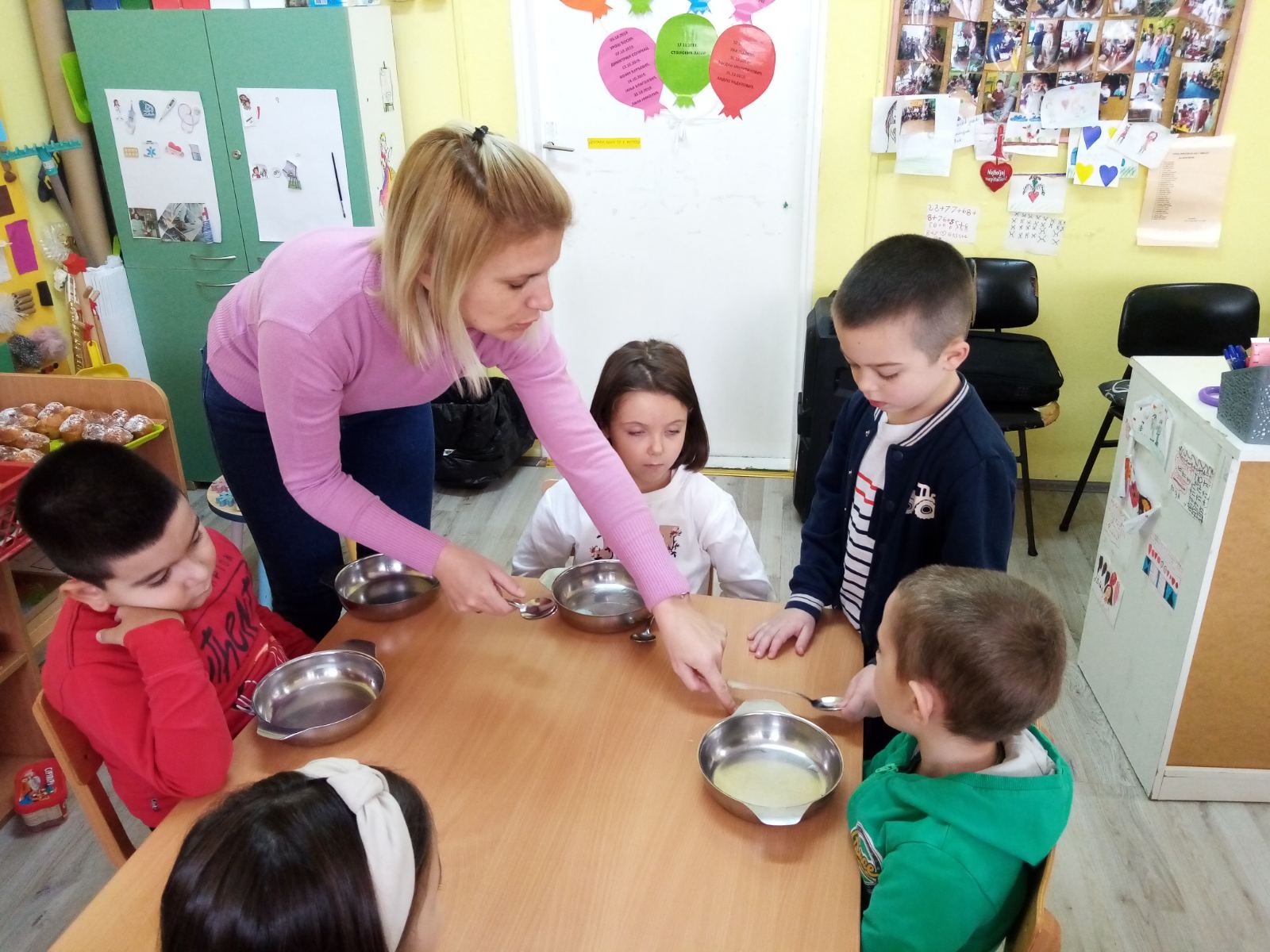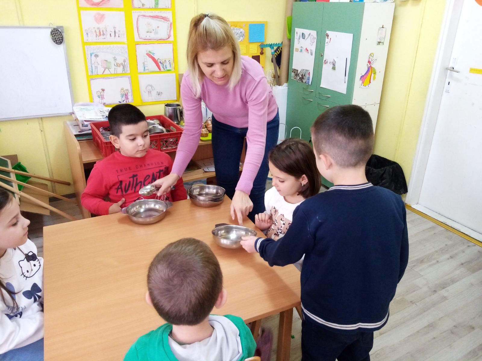 Војин током активности слабо говори, али пажљиво прати инструкције васпитача или особе од поверења. Када му се покаже како да сложи играчке, он то извршава тачно како је виђено. На пример , ако васпитач каже: „Војине, стави тањире овде и кашике поред њих“, Војин мирно и пажљиво поставља предмете, показујући способност да следи инструкције и учествује у активности.