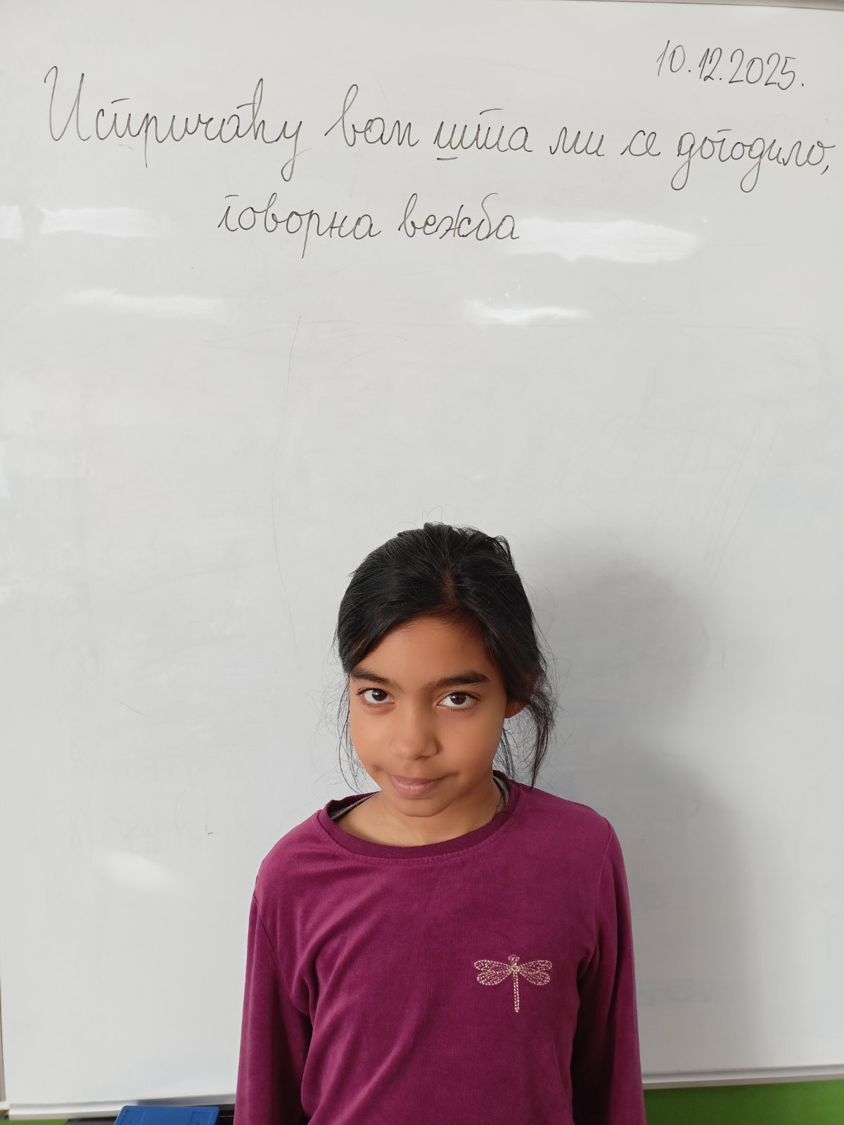 - 9. 12. 2025. Анастасија је добра девојчица, али ју је веома тешко заинтересовати за рад и усвајање нових знања. Креативна је, али помало самовољна. Већ две године по сопственом избору похађа и ритмичку секцију. Ове године је нешто почело да се мења па повремено показује жељу да учествује у активностима, да учи читање и писање, да се јави да одговори на неко питање. Обично јој није успевало да самостално говори на неку тему, иако се јави, већ би то чинила уз подстицај, подршку и помоћ. Тог дана се јавила да говори на тему Испричаћу вам шта ми се догодило. Претпостављам да су је излагања друге деце мотивисала и да је желела са њима да подели оно што је њу усрећило. Сви ученици су очекивали да ће изаћи и ћутати, јер обично то учини, али она је сада у једном даху, помало неразговетно, али добро, испричала свој догађај. Говорила је о томе како ју је снајка усрећила када је родила девојчицу Теу, а после две године и Тадију. Сви смо били веома пријатно изненађени! Направила је велики корак и сама излагала! Желимо јој да баш тако настави надаље.