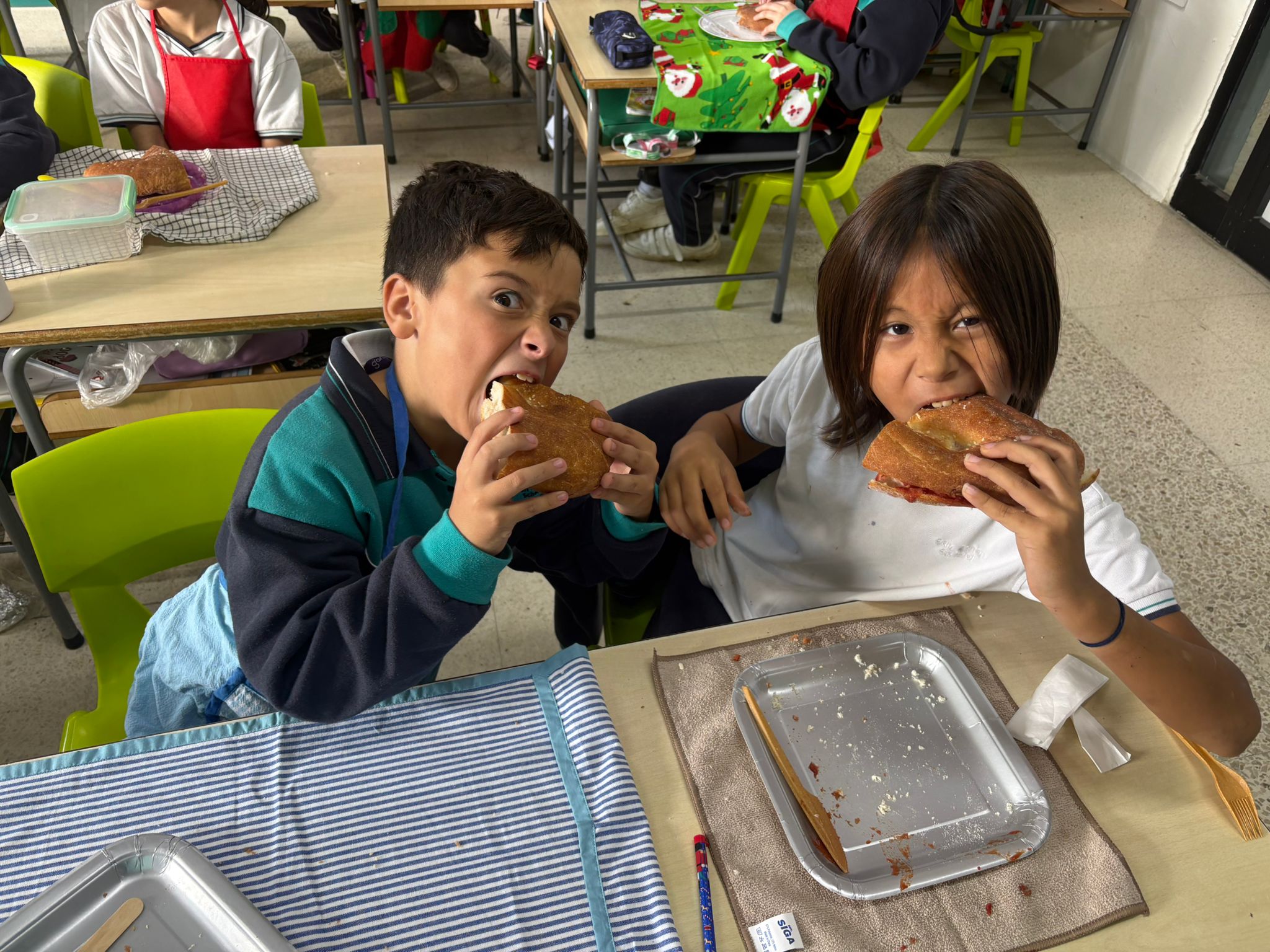 - The students demonstrated collaboration by working together to prepare the ftira, sharing tasks and supporting one another throughout the activity.