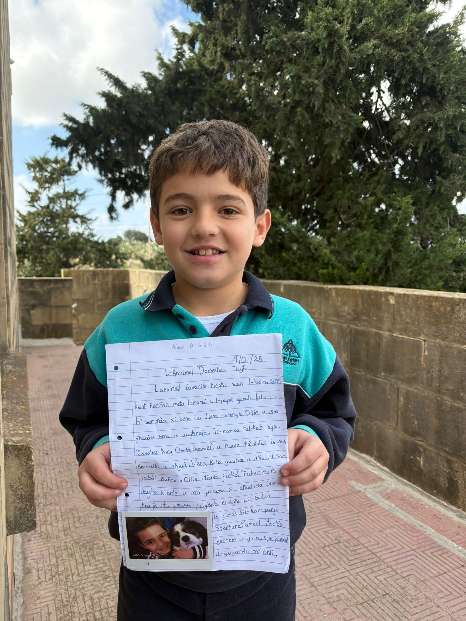 - This student was asked to write a few sentences about his pet, but he showed excellent initiative by writing a full paragraph in Maltese. He confidently expressed his ideas in his home language and further enriched his work by including a picture of his favourite pet. This demonstrates creativity, pride in his work, and a willingness to go beyond the task requirements. Well done for taking ownership of your learning and expressing your ideas so thoughtfully.