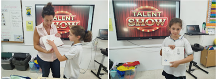 • Mia is very shy and doesn’t always participate in class. However, she is developing her creative abilities in artistic and non-artistic activities to help her participate more in class. She brought in her art portfolio to share her work with the class. She also explained each drawing and described the message behind it.