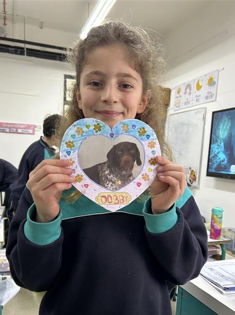 - Olivia showed creativity during Animal Awareness Week by carefully sticking her pet picture, framing it with a heart shape, and colouring around it. She took pride in her work and added her own special touch.