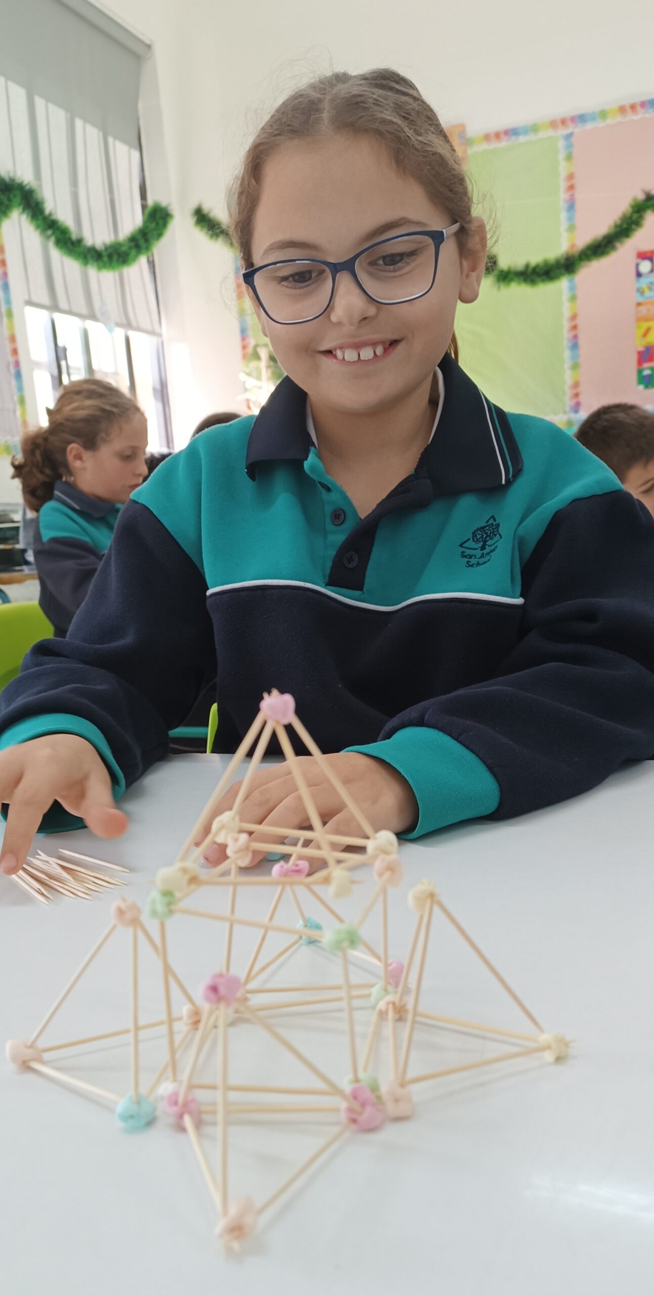 - The student stayed positive and confident during the 3D shapes activity. By using sticks and marshmallows, they were able to build a 3D shape and show their understanding in a hands-on way.