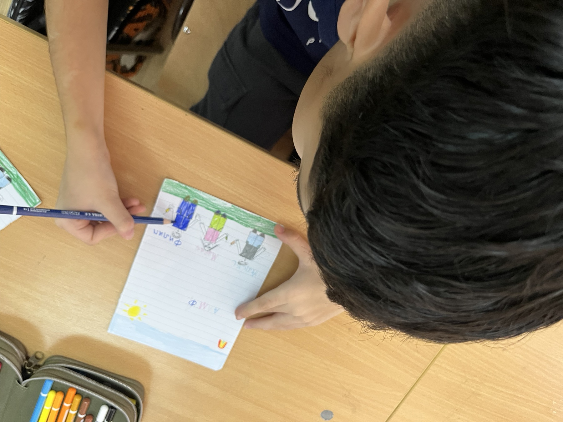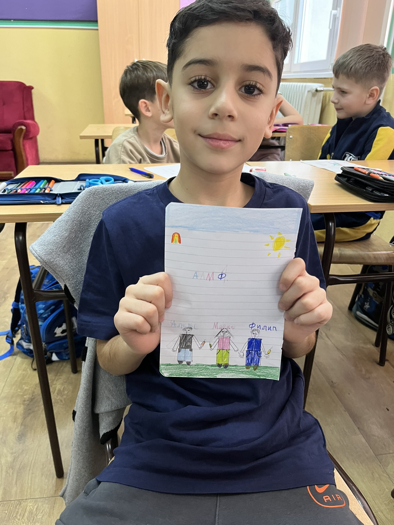 - Током часа Ликовне културе, ученици су радили у групама и правили плакат на тему „Моја школа“. Док су се другови двоумили шта да цртају, Александар је предложио да на плакату прикажу учионицу, двориште и своје омиљене активности. Објаснио је своју идеју и предложио да свако дете нацрта један део. Слушао је предлоге другара и заједно са њима се договорио како да расподеле задатке. Током рада је подстицао све чланове тима да учествују и помагао када је било потребно. На крају су успешно завршили плакат и поносно га представили разреду. Све ово би личило на једну свакодневну ситуацију са часа да Александар није дечак који је у први разред дошао са сојом сестром из Немачке. С обзиром на језичку баријеру и ново окружење, фокус је био искључиво на сестри. Тек сада, након више од годину дана, Александар иницира сарадњу са свим друговима и другарицама из одељења.